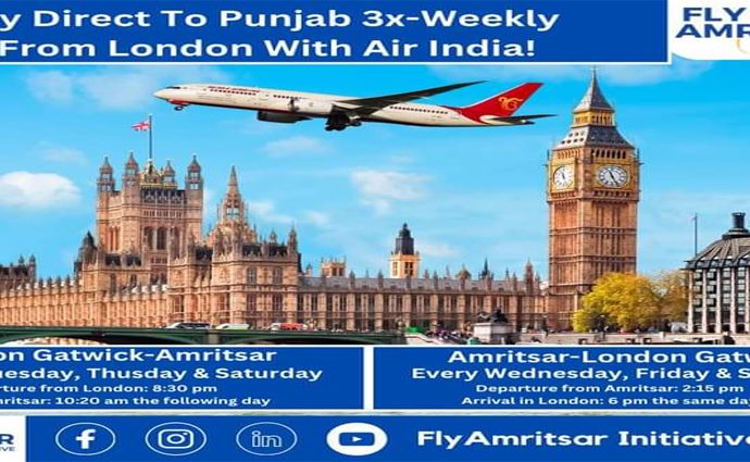 ਇਹ ਉਡਾਣ ਮੰਗਲਵਾਰ, ਵੀਰਵਾਰ ਅਤੇ ਸ਼ਨੀਵਾਰ ਲੰਡਨ ਤੋਂ ਰਵਾਨਾ ਹੋਵੇਗੀ ਅਤੇ ਅੰਮ੍ਰਿਤਸਰ ਤੋਂ ਬੁੱਧਵਾਰ, ਸ਼ੁੱਕਰਵਾਰ ਅਤੇ ਐਤਵਾਰ ਨੂੰ ਉਡਾਣ ਭਰੇਗੀ। Continue Reading